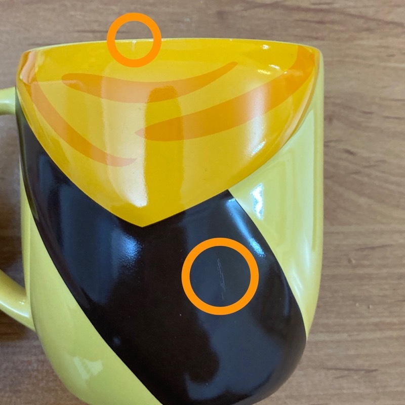 ماگ کاملا نو و سالم میباشد، مطابق با عکس چهارم، نقطه در دهانه ماگ و خش جزئی در پشت ماگ دارد