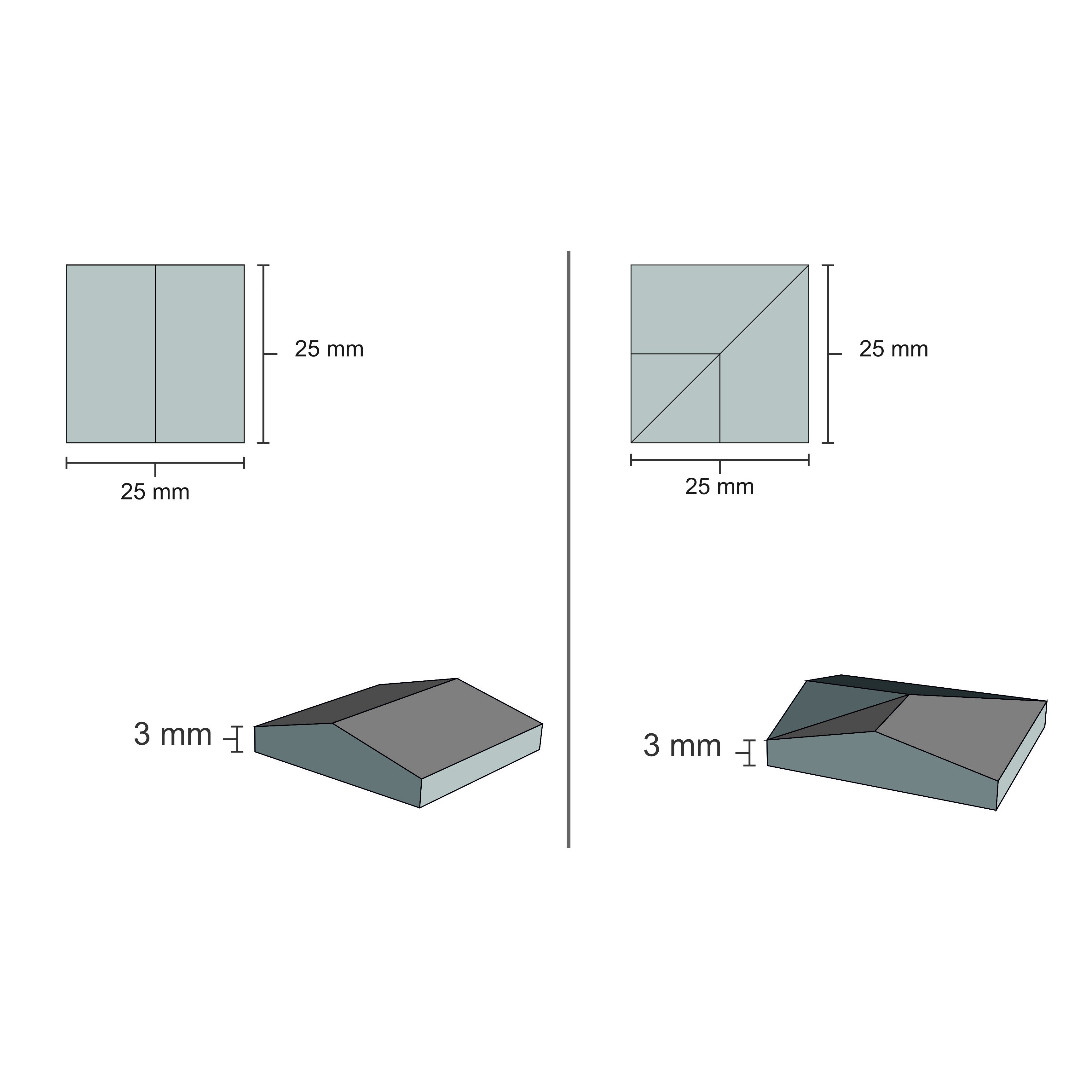 - اندازه: ۲/۵ در ۲/۵ در ۰/۳ سانتی متر