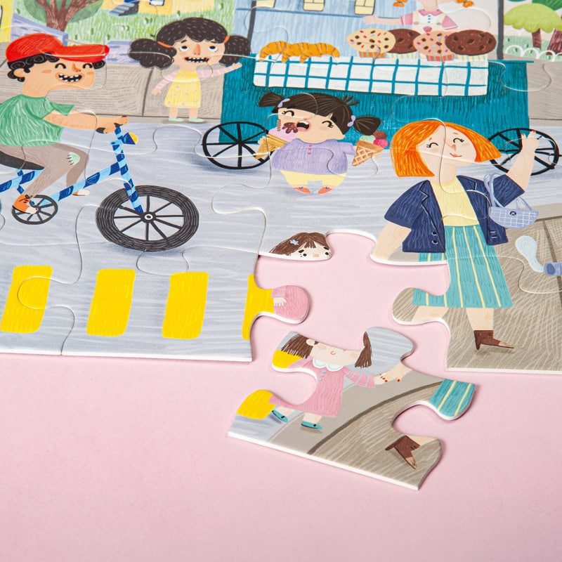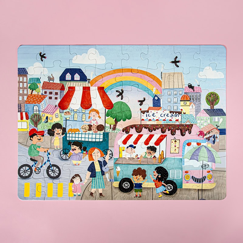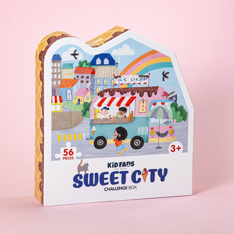 پازل شهر دوست داشتنی یک پازل ۵۶ تکهای است که کودکان را به جشنوارهای رنگارنگ پر از شیرینی، شکلات و بستنی در دل شهر میبرد. این بازی پازل برای کودکان علاوه بر سرگرمی، تخیل و خلاقیت آنها را تقویت میکند.