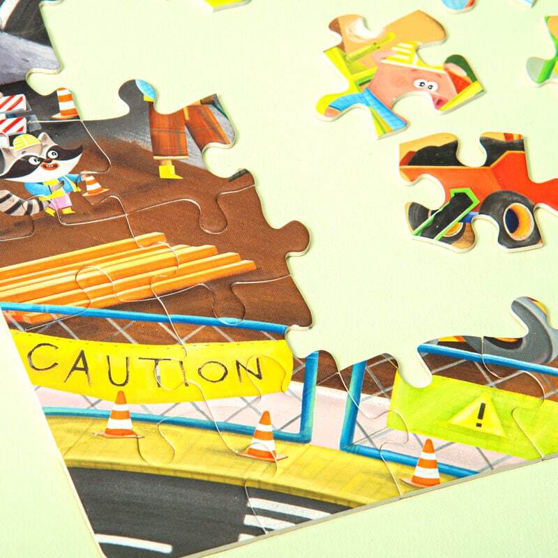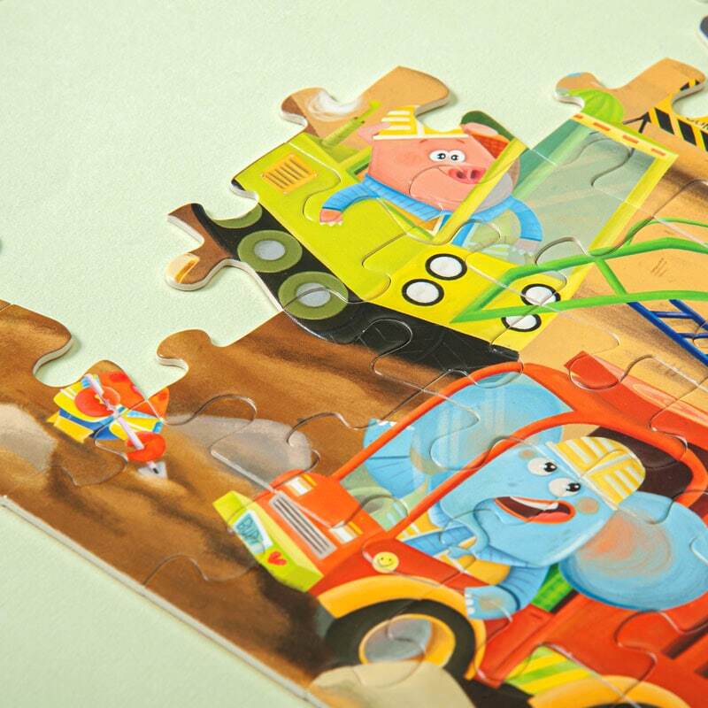 پازل ماشینهای راهسازی یک پازل ۶۳ تکهای است که کودکان را با یک کارگاه جذاب و انواع ماشینهای ساختوساز آشنا میکند. این بازی پازل برای کودکان با حضور حیوانات مهندس جنگل، داستانی شیرین و سرگرمکننده خلق کرده و همزمان به تقویت مهارتهای ذهنی، تمرکز و حل مسئله کمک میکند.