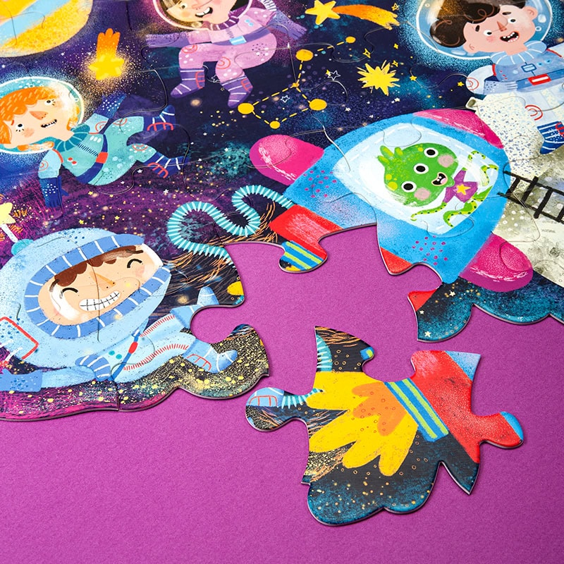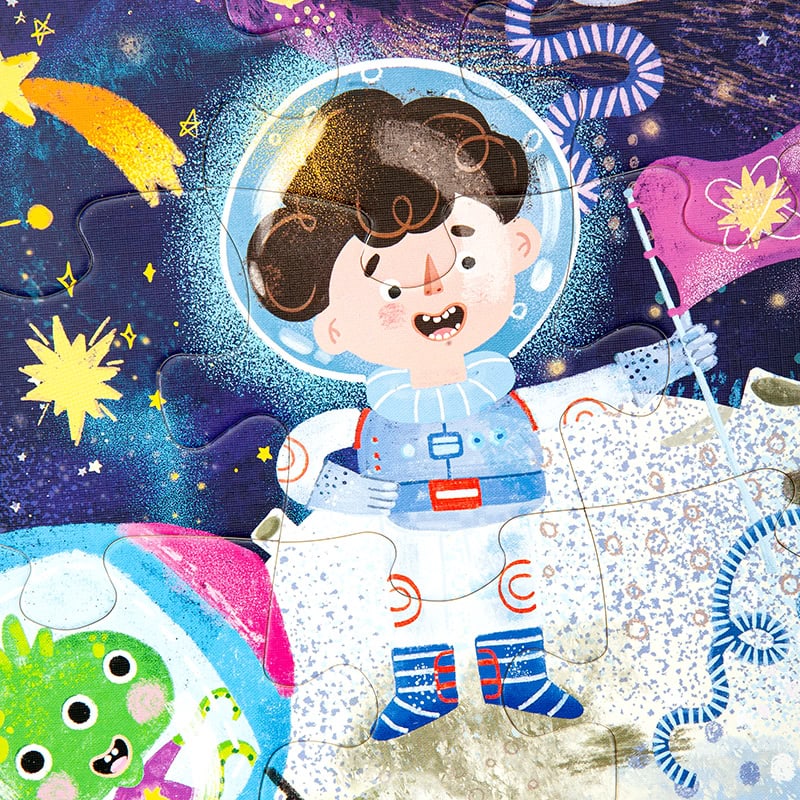 پازل ماجراجویی در فضا یک پازل ۳۳ تکهای است که کودکان را به سفری هیجانانگیز در منظومه شمسی میبرد. این بازی پازل برای کودکان علاوه بر سرگرمی، قوه تخیل و خلاقیت آنها را تقویت کرده و یادگیری مفاهیم علمی را به تجربهای لذتبخش تبدیل میکند.
