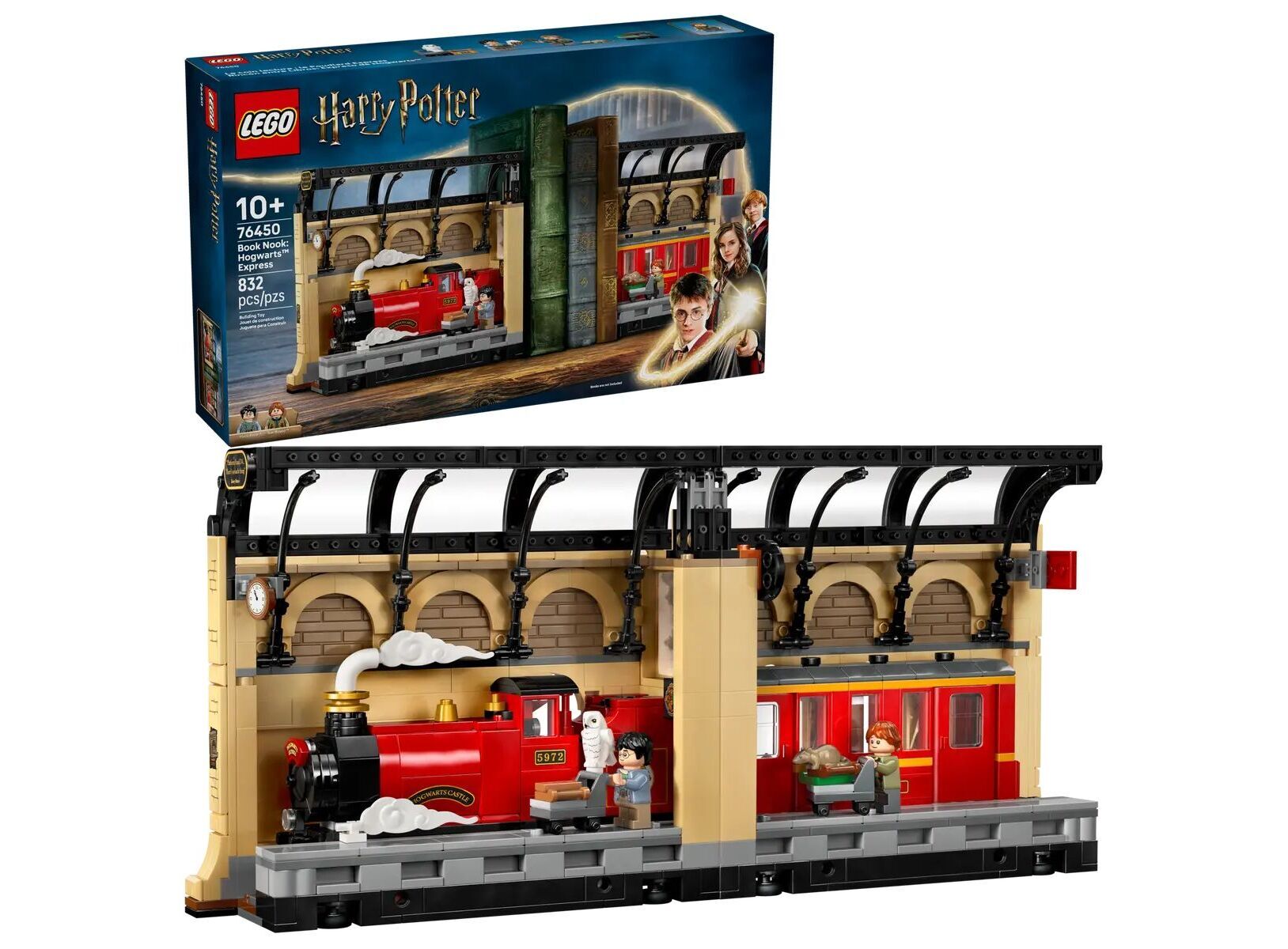 با ست ساختنی LEGO Harry Potter Book Nook جادوی هاگوارتز را به قفسهی کتاب خود بیاورید. این مجموعه شامل بخشی از قطار معروف Hogwarts Express است و به شکلی خلاقانه یک دکور زیبا بین کتابها میسازد. کودکان میتوانند صحنهی معروف سکوی 9 و سهچهارم را با مینیفیگورهای هری پاتر و ران ویزلی و حیوانات جادوییشان هدویگ و اسکبرز بازسازی کنند.