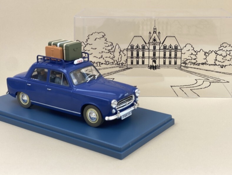 The blue taxi from Marlinspike, it is time for the Milanese nightingale to leave along with her entourage from the adventure The Castafiore Emerald. You can feel Marlinspike Hall heave with relief as the taxi leaves laden from roof rack to boot with Her luggage!