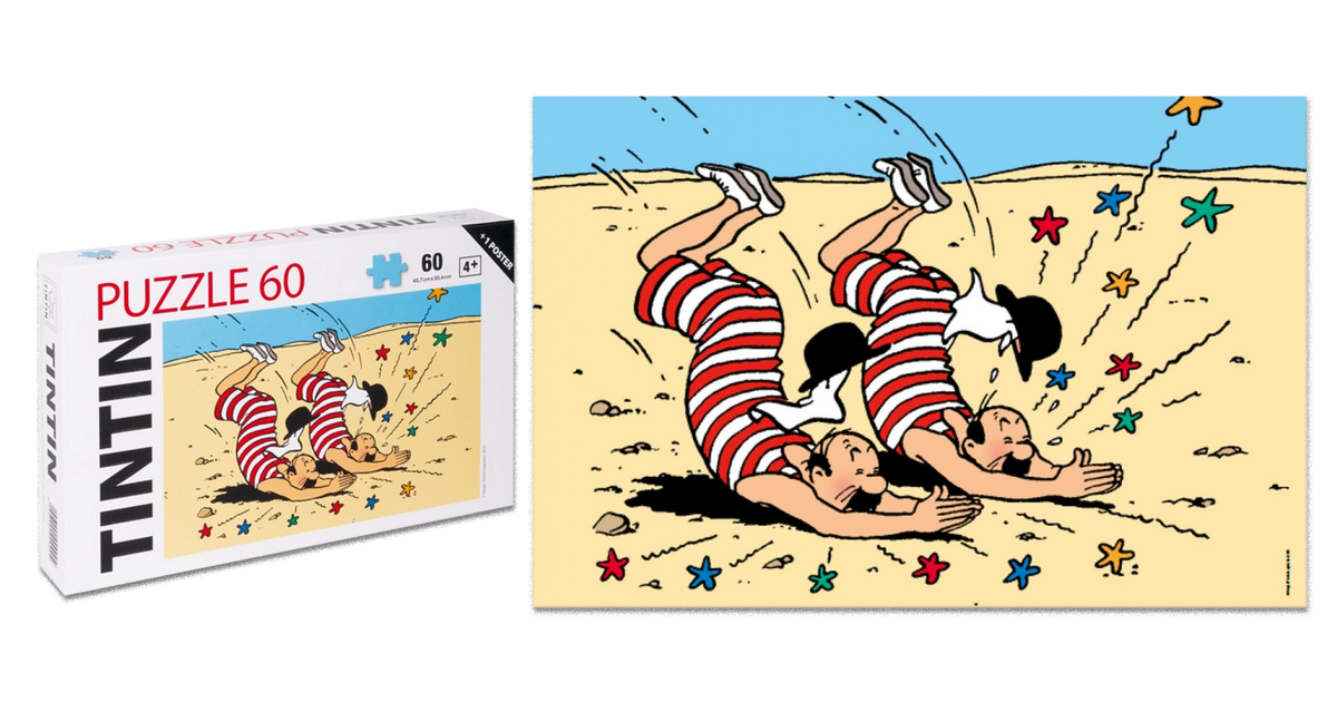 شیرجه نمادین تامسون و تامپسون در کتاب تنتن در سرزمین طلای سیاه (صفحه ۲۰، تصویر D1) موضوع این پازل است.