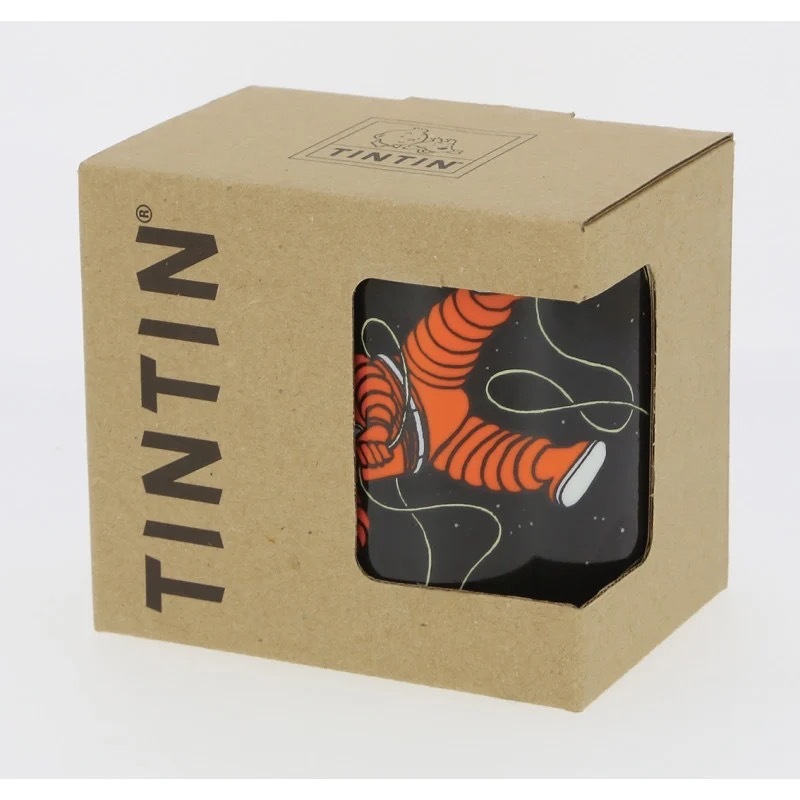 این ماگ، آیتمی شیک و ویژه برای عاشقان تن تن و کره ماهه. این تصویر مربوط به تنتن و کاپیتان هادوک در لباسهای فضاییشان است. تنتن سعی میکند کاپیتان هادوک را که تازه از موشک بیرون آمده بود، بگیرد ( در صفحه 10 از کتاب «روی ماه قدم گذاشتیم» آمده این لیوان چینی، دستهای پهن و خمیده دارد و برای انواع نوشیدنیهای گرم ایدهآل است. قابل شستشو در ماشین ظرفشویی و استفاده در مایکروویو است. هر لیوان در یک جعبه مقوایی جذاب ارائه میشود. یک هدیه عالی!